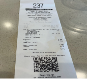Today I decided to do a story on this great bargain you can use anytime during the month of October. To start off you’re going to want to order something cheap such as a soda or some of the famous Mcdonald’s Fries. After you place your order then, you’re going to want to locate the “buy one get one deal at the top of your receipt” which you can use on another purchase in the same visit. Then go order your favorite sandwiches but the only rule to this deal is that they have to be the same price or lesser value. I ordered a Cheeseburger and McChicken and only paid $2.39! You can do the same thing like this if you follow the one rule. Also for a limited time through 11/23 McDonald’s has Pumpkin & Creme Pies which I think are great for fall or a yummy dessert. You can add 2 for only $2.79 to this deal. If you want to see more stuff like this, give some ideas for a November blog.